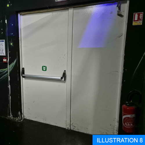 - Illustration 8 : attention, lors des reculs, à ne pas ouvrir des portes de secours ou à décrocher des extincteurs
